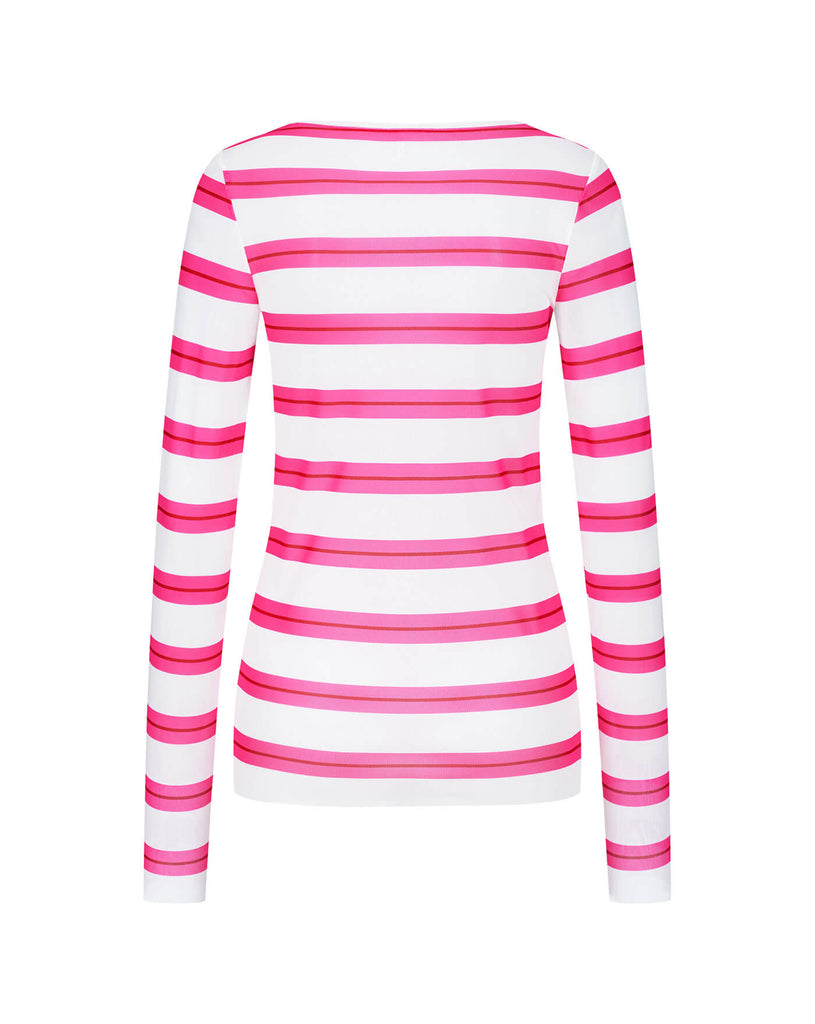 Leicht, luftig und ein echter Hingucker – unser Long-Sleeve aus Mesh bringt Frische in deine Garderobe. Das semi-transparente Material sorgt für eine aufregende Optik, während die farbenfrohen Streifen dem Shirt eine dynamische Note verleihen. Dank des taillierten Schnitts lässt es sich vielseitig stylen.
