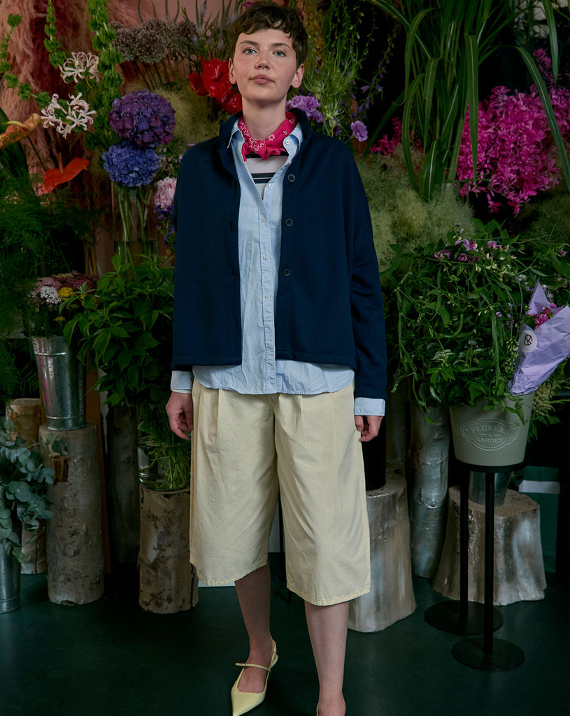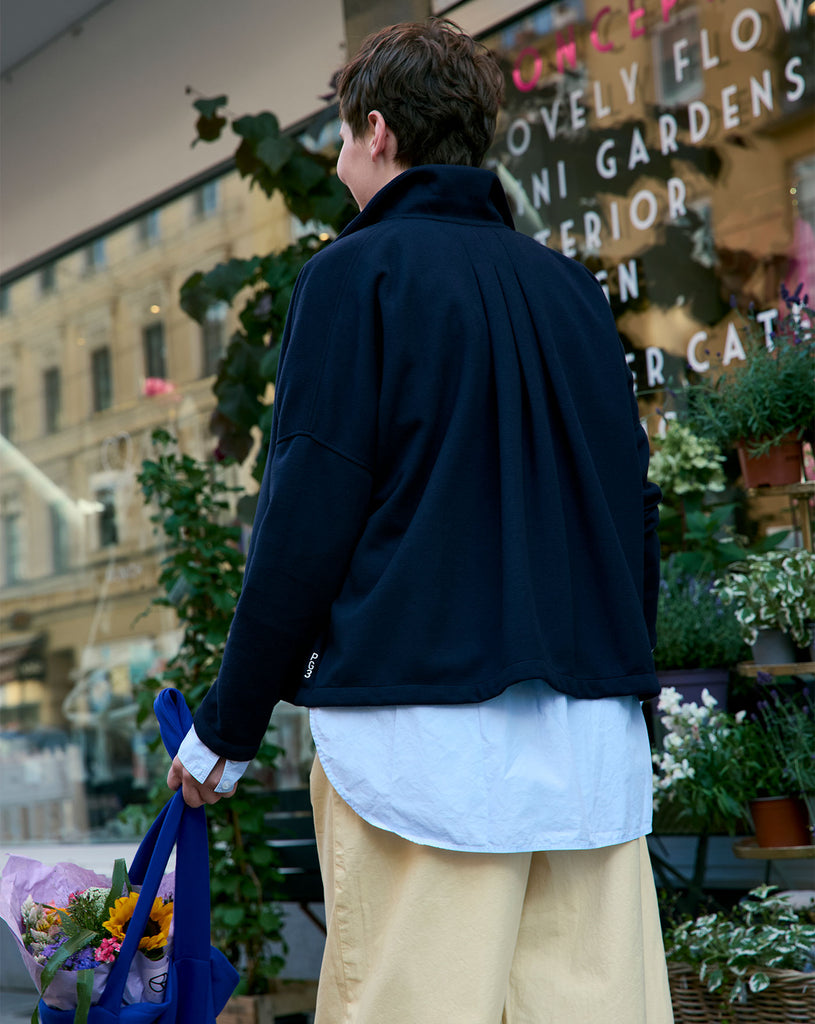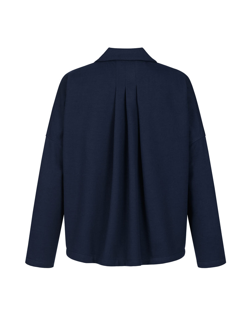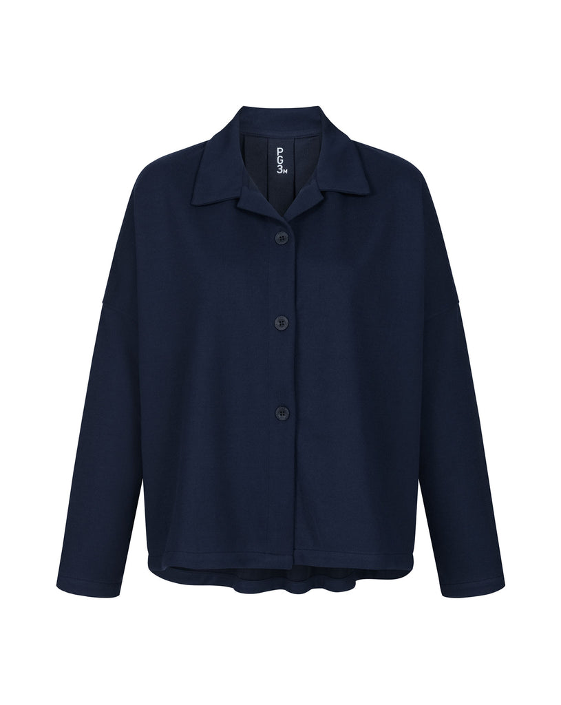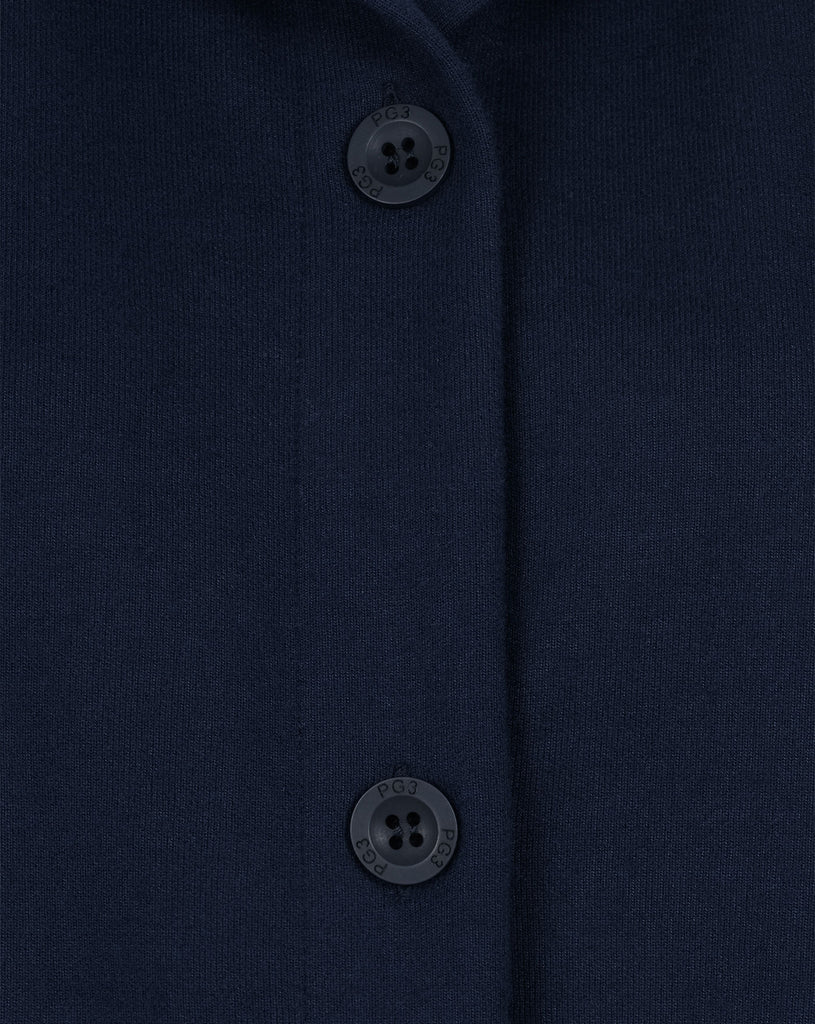 PG3Hemdjacke GABRIEL – Faltenrückseite & Logo-Akzent. Hybrid aus Sweatjacke und Hemd mit drei charakteristischen Rückenfalten. PG3 Logo-Knöpfe, kleiner Kontraststreifen unterm Kragen – sichtbar, wenn hochgestellt. Casual mit Twist.