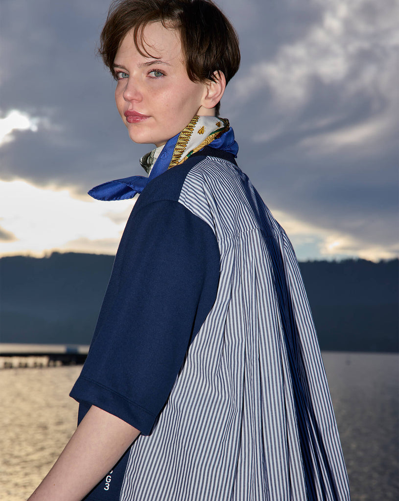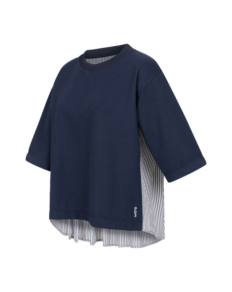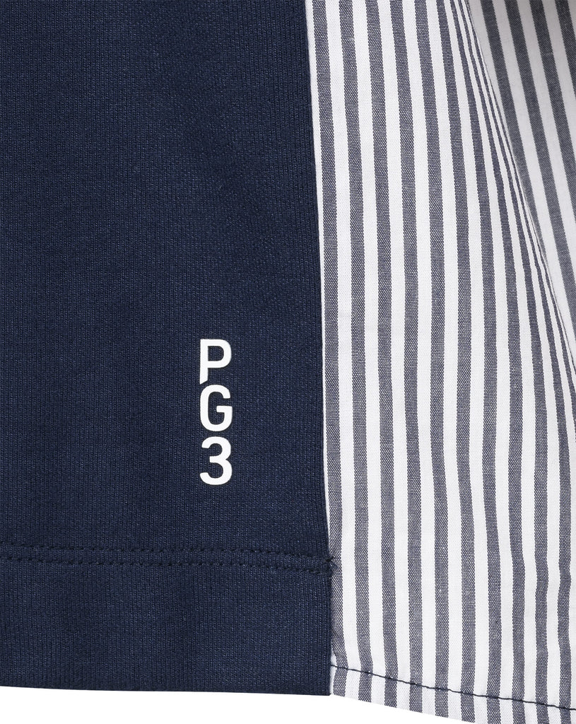 Der Sweater PERPETUA für Damen setzt auf einen außergewöhnlichen Materialmix und ist das erste Modell seiner Art in der PG3-Kollektion. Die Vorderseite aus klassischer Sweat-Qualität wirkt clean und modern, während der Rücken aus fein gefaltetem Blusenstoff mit dezenten Streifen ein elegantes Highlight setzt.