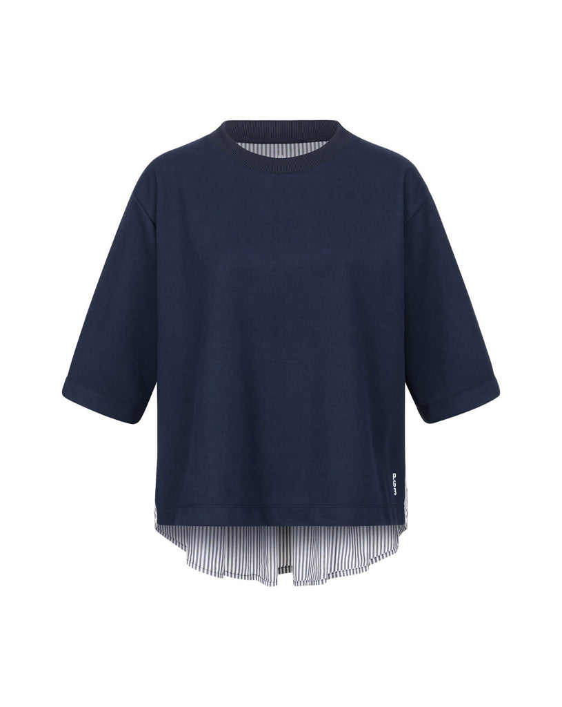 • Innovativer Materialmix: Sweat vorne, gefalteter Blusenstoff hinten